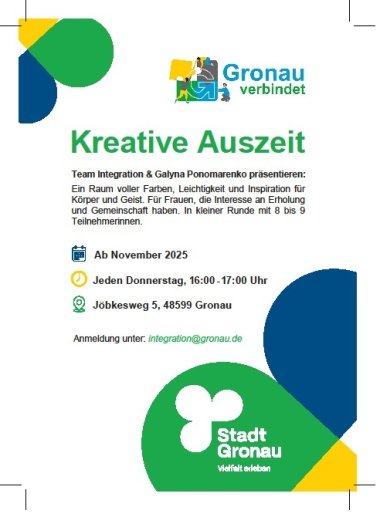 Anmeldung: per Mail an integration@gronau.deWer mitmachen möchte, meldet sich einfach an und bringt ein bisschen Neugier mit. Alles andere ergibt sich.