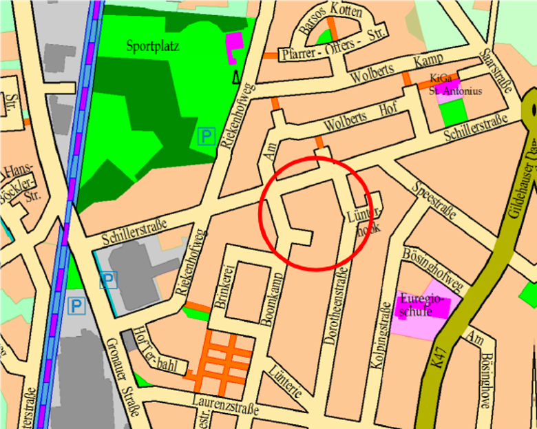 Der Ausschuss für Planen, Bauen und Denkmalschutz hat in seiner Sitzung am 18.03.2026 über die Zustimmung der Gemeinde gem. § 36a BauGB zu einem Antrag auf Bauvorbescheid, betreffend einer Teilfläche des bislang unbebauten Grundstücks Gemarkung Epe, Flur 27, Flurstück 977, gelegen zwischen dem Boomkamp im Westen, der Dorotheenstraße im Osten und der Schillerstraße im Norden, beraten.